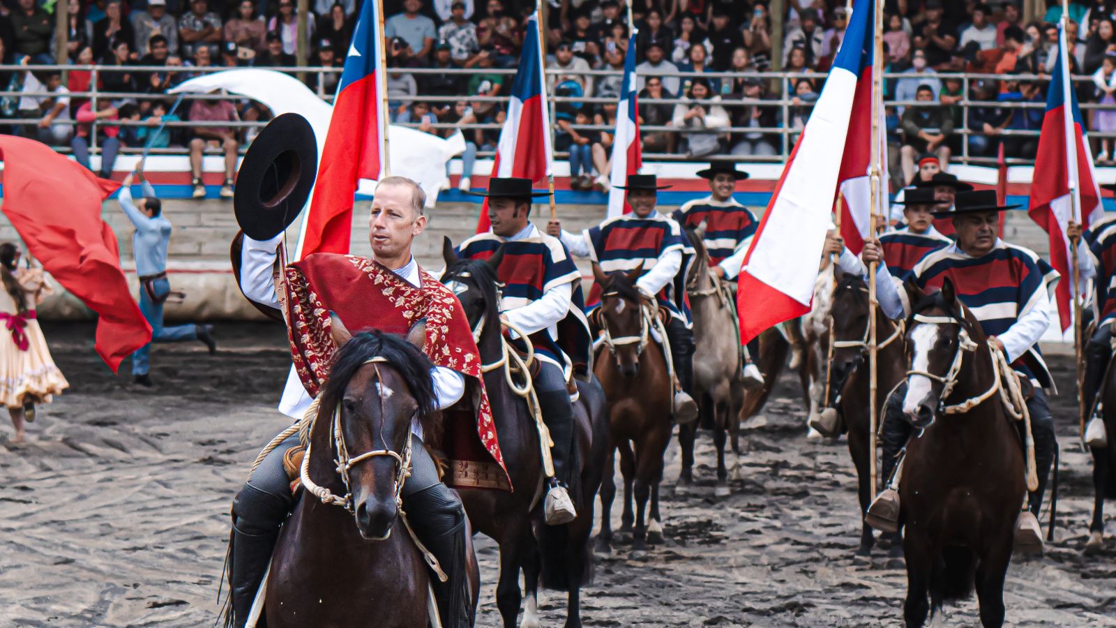 La zona central también tuvo su espacio estelar con la tradicional cueca a caballo, acompañada por la voz de la cantora oficial de la agrupación, Carmencita Valdés, quien celebra 30 años de trayectoria.