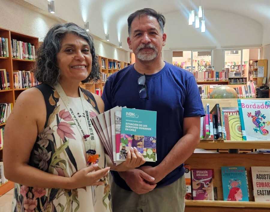 Aprovechando la visita a cada establecimiento, el INDH complementó la donación con material sobre el Informe Anual INDH 2025 y afiches de la campaña “Conoce, promueve, defiende los derechos humanos”, fortaleciendo así el rol de las bibliotecas como espacios vitales para la promoción y educación en pos de una convivencia sana.