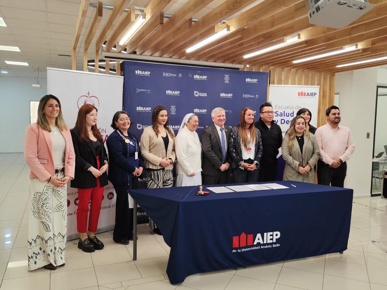La institución de educación superior AIEP y la Fundación Las Rosas firmaron un convenio de colaboración, que busca fortalecer el cuidado de adultos mayores en situación de vulnerabilidad a lo largo del país.