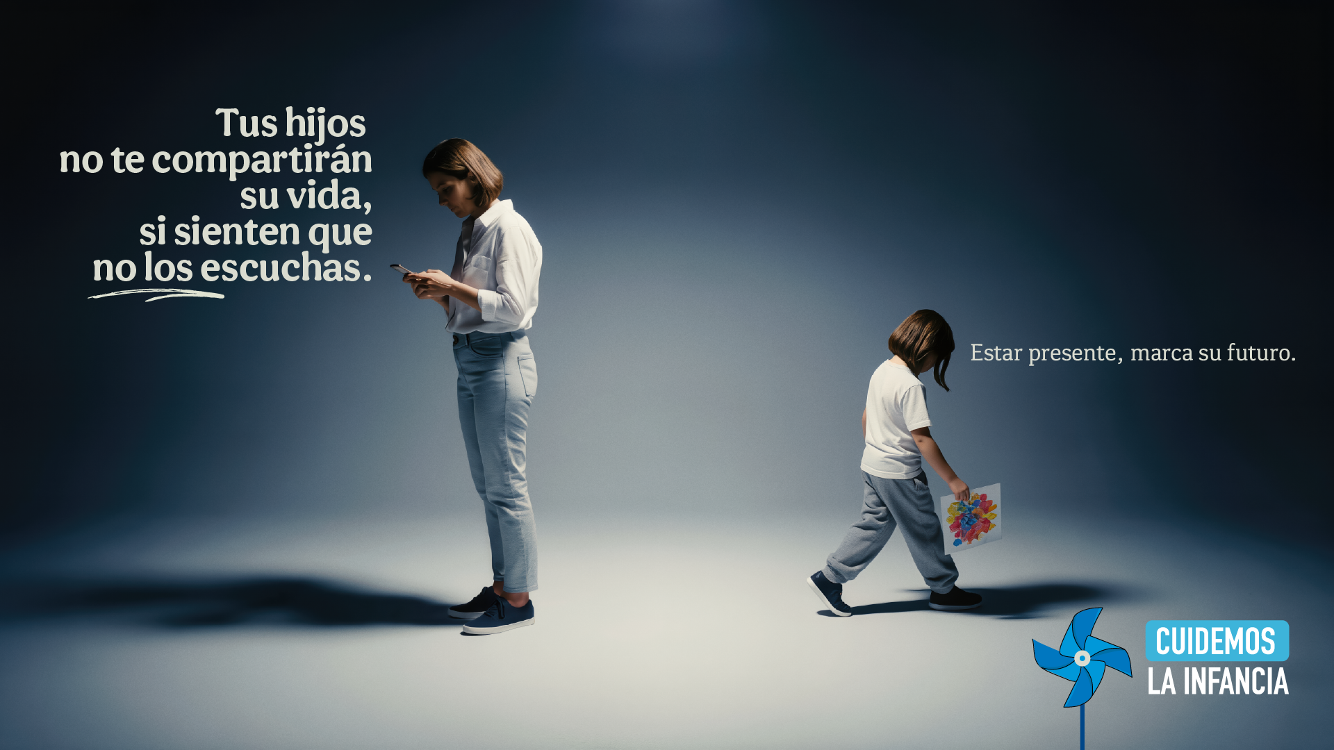 Escuchar, mirar, estar y acompañar a tus hijos es cuidar su única infancia. Ese es el llamado central de esta campaña, que busca relevar la importancia de la presencia en lo cotidiano: en las conversaciones, en la atención real y en la capacidad de hacer sentir a los niños vistos, escuchados y validados en sus sentimientos, sus gustos, sus actividades, sus miedos, sus emociones, sus sueños y sus ilusiones.