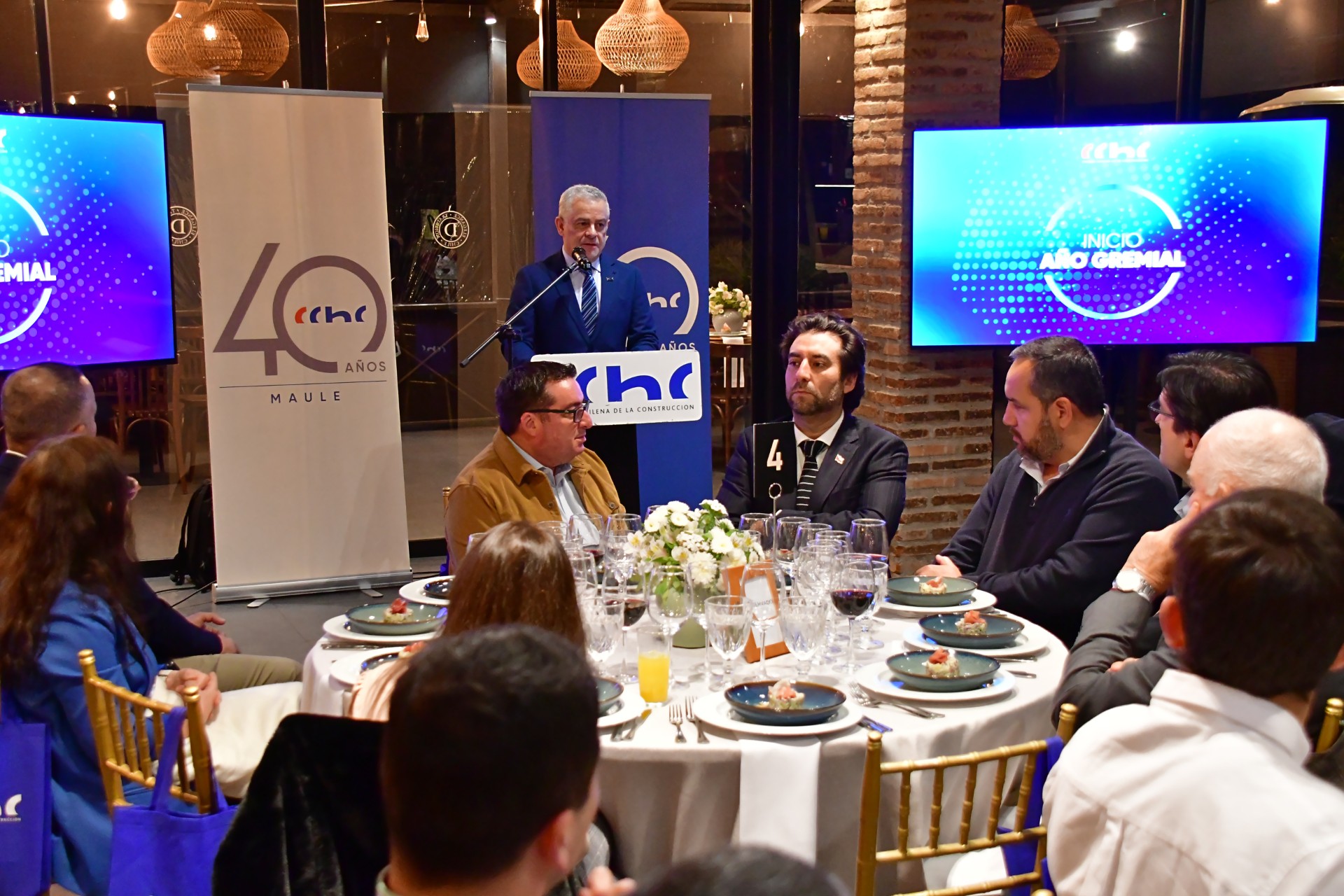 Con una amplia asistencia de socios y socias del gremio, junto a autoridades nacionales y regionales, la Cámara Chilena de la Construcción (CChC) Maule dio inicio a su nuevo año gremial en una ceremonia encabezada por su presidente, Patricio Gómez.