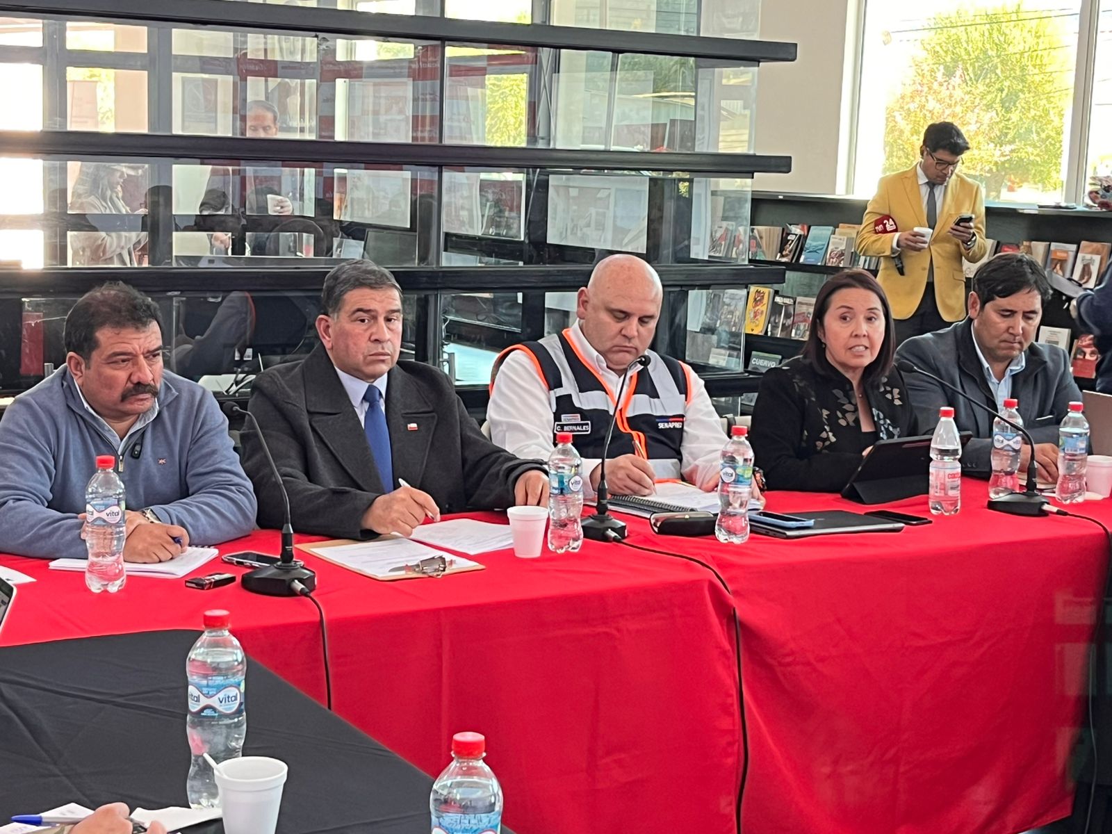 En la instancia, participó el director regional de Senapred, Carlos Bernales; los seremis del MOP, Yasna Cancino; Salud, Izcra Cox; Agricultura, Alejandro Muñoz; Desarrollo Social, Pablo Olivares y Bienes Nacionales, Flavio Bazzi.