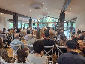 El encuentro se realizó en el Salón Azul del Club Palestino de Santiago y contó con la presentación del ex parlamentario y ex embajador Patricio Hales, quien reflexionó sobre el profundo rol de la comunidad árabe-palestina en Chile y la relevancia de rescatar y preservar su historia.