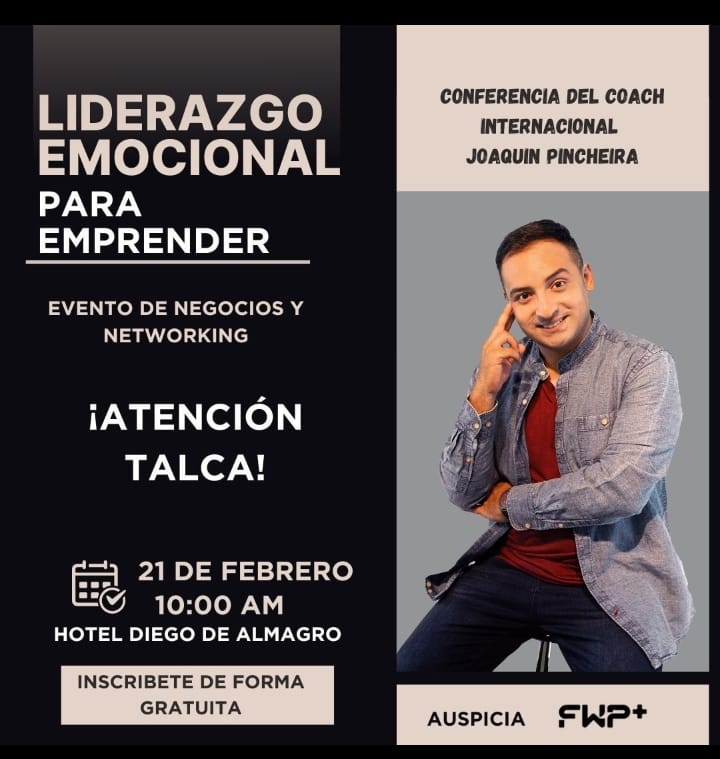 “Soy Joaquín Pincheira y quiero invitar a todas las personas de Talca y alrededores a participar en este evento. Será un espacio de aprendizaje donde compartiré herramientas valiosas para que puedan lograr todo lo que se propongan”, concluye el escritor y periodista.