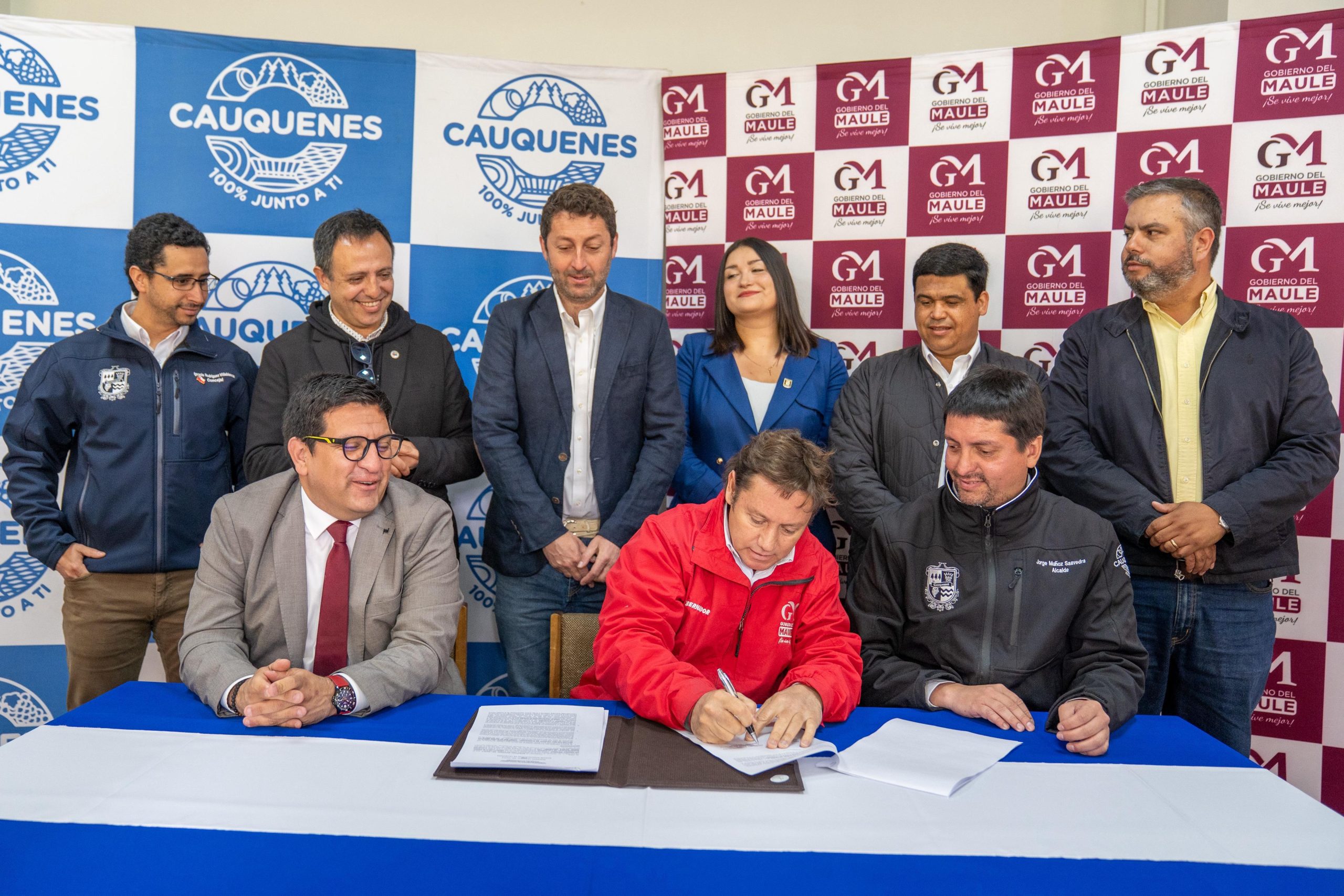 CAUQUENES.– En dependencias de la Municipalidad de Cauquenes, el gobernador del Maule, Pedro Pablo Álvarez-Salamanca, junto al alcalde Jorge Muñoz, encabezaron la firma del convenio que permitirá ejecutar el proyecto “Conservación Vías Urbanas, Sector Centro, Comuna de Cauquenes”, una esperada iniciativa que busca recuperar la infraestructura vial del corazón de la ciudad.