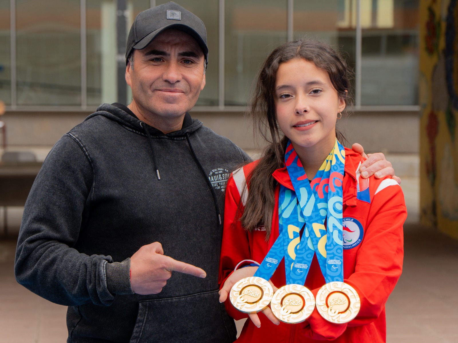 La joven integrante del Team ParaChile, estudiante del Liceo Claudina Urrutia de Cauquenes, dependiente del Servicio Local de Educación Pública, Maule Costa, se adjudicó 3 medallas de oro en los Juegos Parapanamericanos Juveniles que se disputan en la capital de nuestro país, al ganar el primer lugar en los 100, 200 y 400 metros planos, con marcas de 00:13,29; 00:26,92 y 00:59,96, respectivamente.