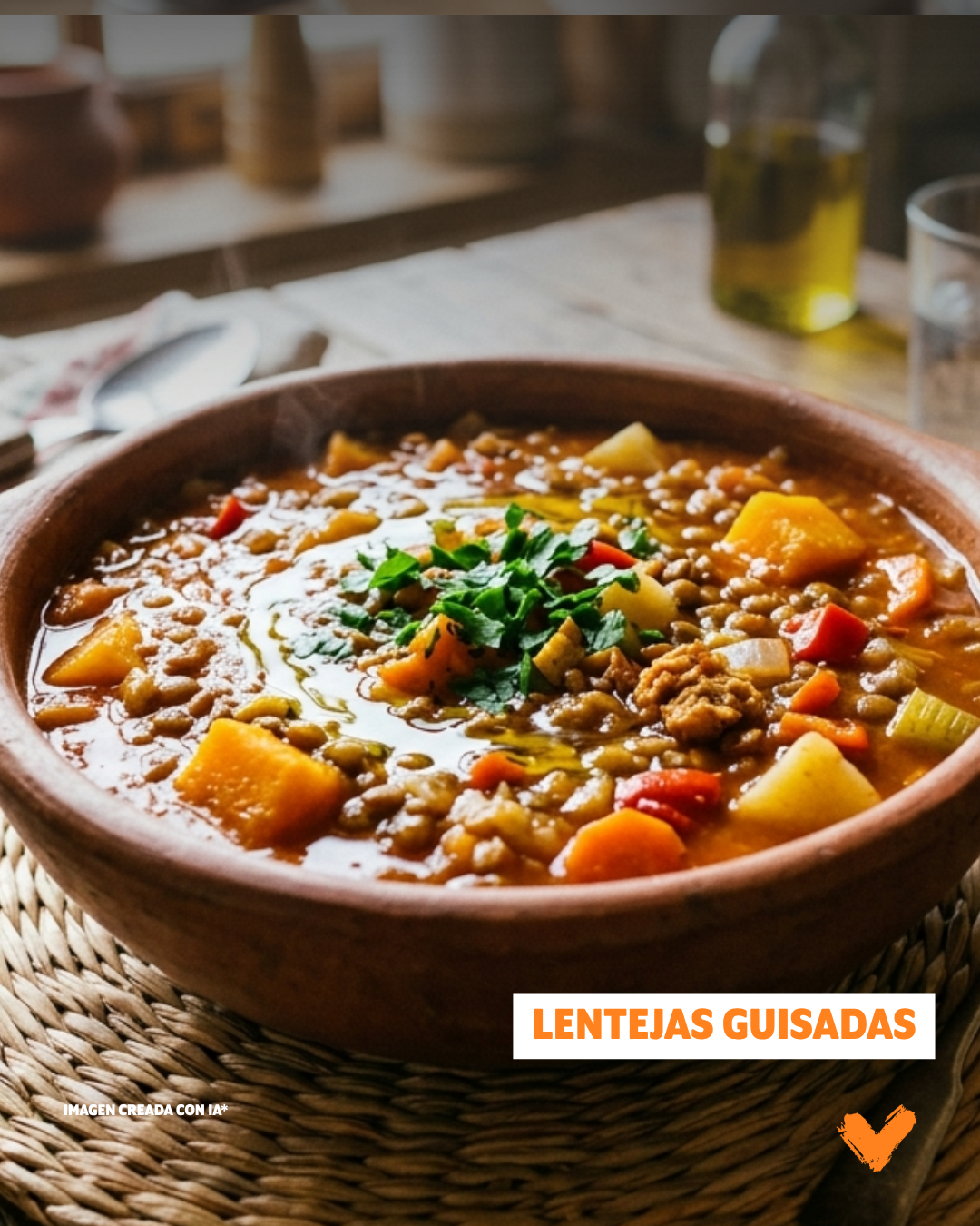 - Lentejas guisadas: lentejas con verduras y arroz.