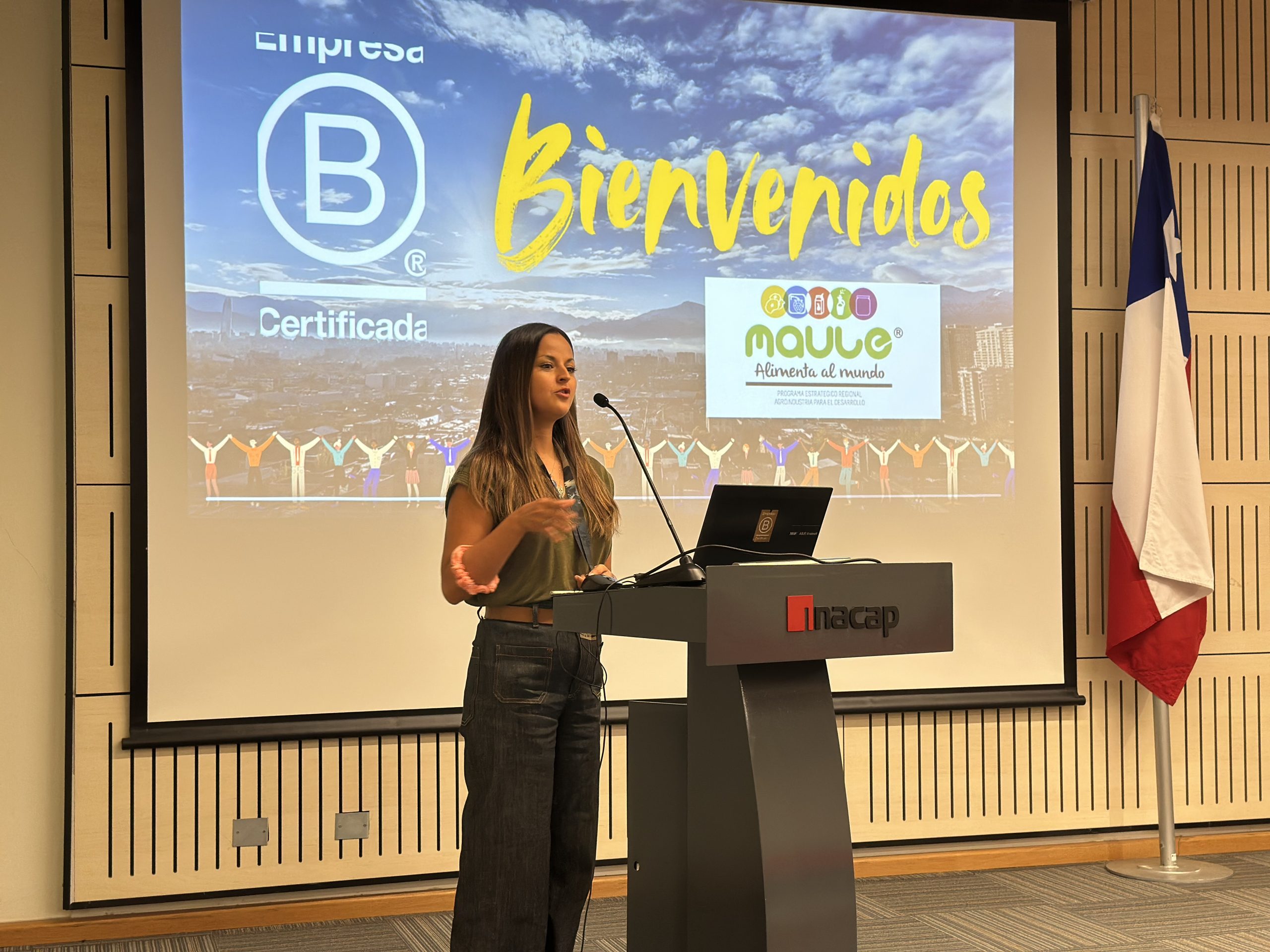 La actividad fue liderada por el subdirector de Corfo, Pablo Elverberg, la directora de comunicaciones de Sistema B, Verónica de la Vega, María Jesús Espinoza, gerente de Kolmenares. La iniciativa se desarrolló en el Auditorio de INACAP Talca y reunió a empresas interesadas en avanzar hacia modelos de negocio más sostenibles, alineados con estándares internacionales en materia ambiental, social y de gobernanza.