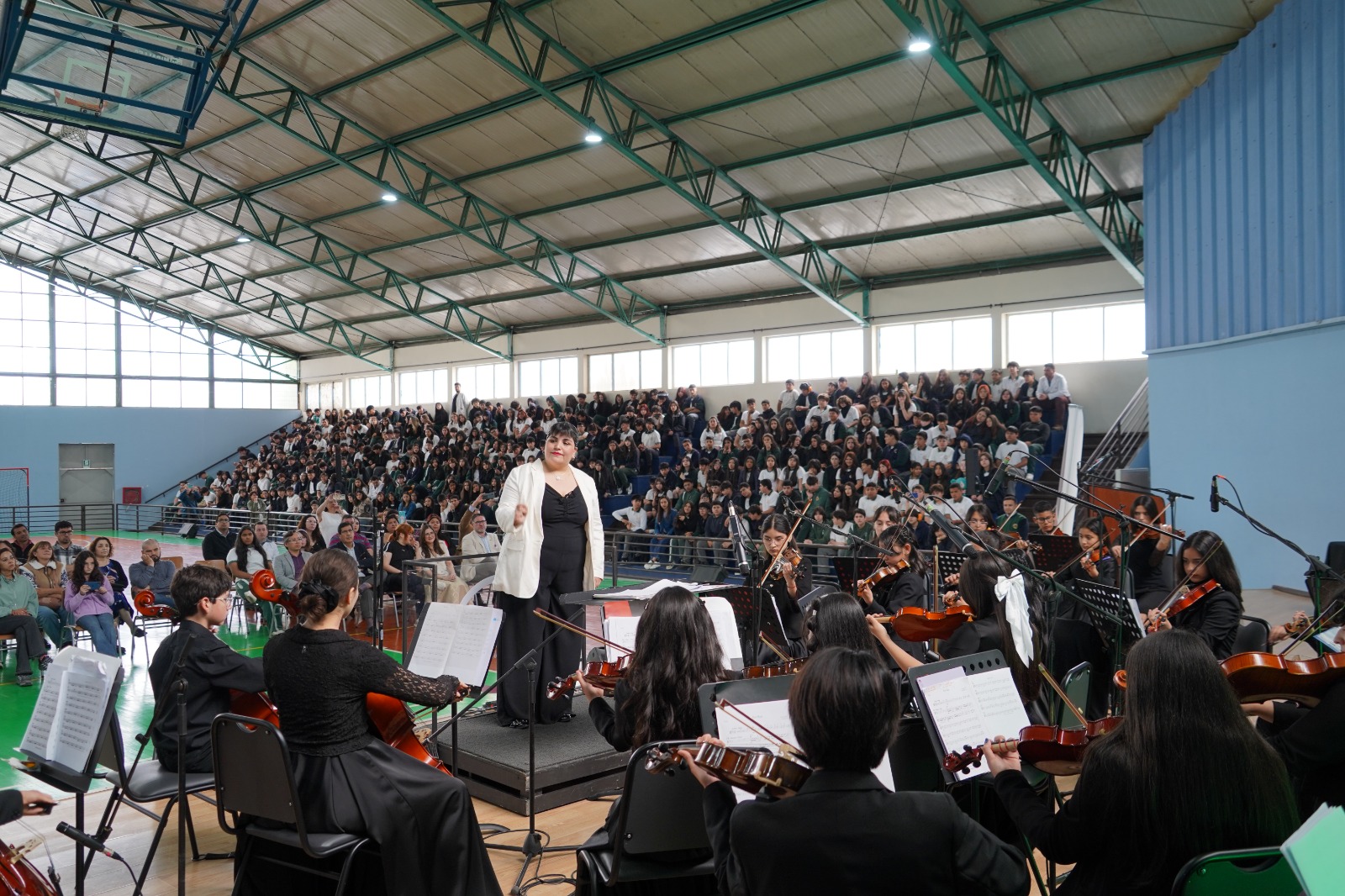 La presentación, realizada en el gimnasio del establecimiento, comenzó a las 11:00 horas y reunió a estudiantes de enseñanza básica y media, quienes disfrutaron de un variado programa musical que combinó obras clásicas y populares latinoamericanas. El repertorio incluyó La Vicuña Roja de Rodrigo Durán, Run Run se fue pa’l norte de Violeta Parra, El Cóndor Pasa del folclor peruano y Todos Juntos de Los Jaivas. También, interpretaron fragmentos de El Carnaval de los Animales de Camille Saint-Saëns, finalizando con una pieza de Antonio Vivaldi en versión rock.