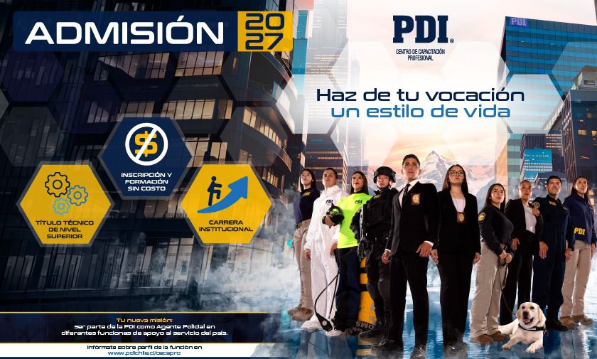 El Centro de Capacitación Profesional (CECAPRO), dependiente de la Jefatura de Educación Policial y Doctrina de la Policía de Investigaciones de Chile, dio inicio el pasado 19 de febrero al proceso de admisión correspondiente al período 2027-2028 para el “Curso de Formación de Agentes Policiales”.