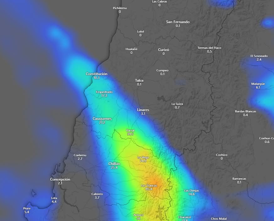 Zona a afectar: Costa maulina y desde Linares al Sur, además del sector Precordillerano/Cordillerano. El resto de la región igual podría tener algunas gotas dispersas.