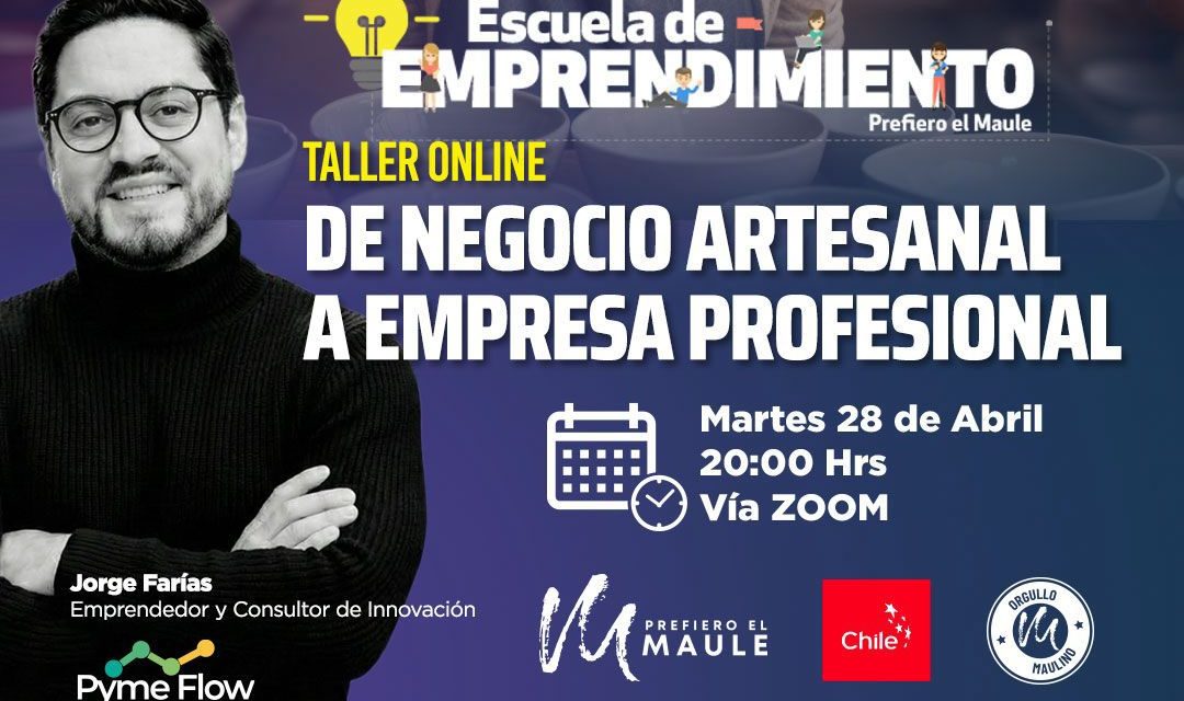 Con el objetivo de seguir fortaleciendo el ecosistema emprendedor de la región, Prefiero el Maule, a través de su Escuela de Emprendimiento, realizará el taller online “De negocio artesanal a empresa profesional”, una instancia formativa dirigida a emprendedores que buscan dar el siguiente paso en la formalización y crecimiento de sus proyectos.