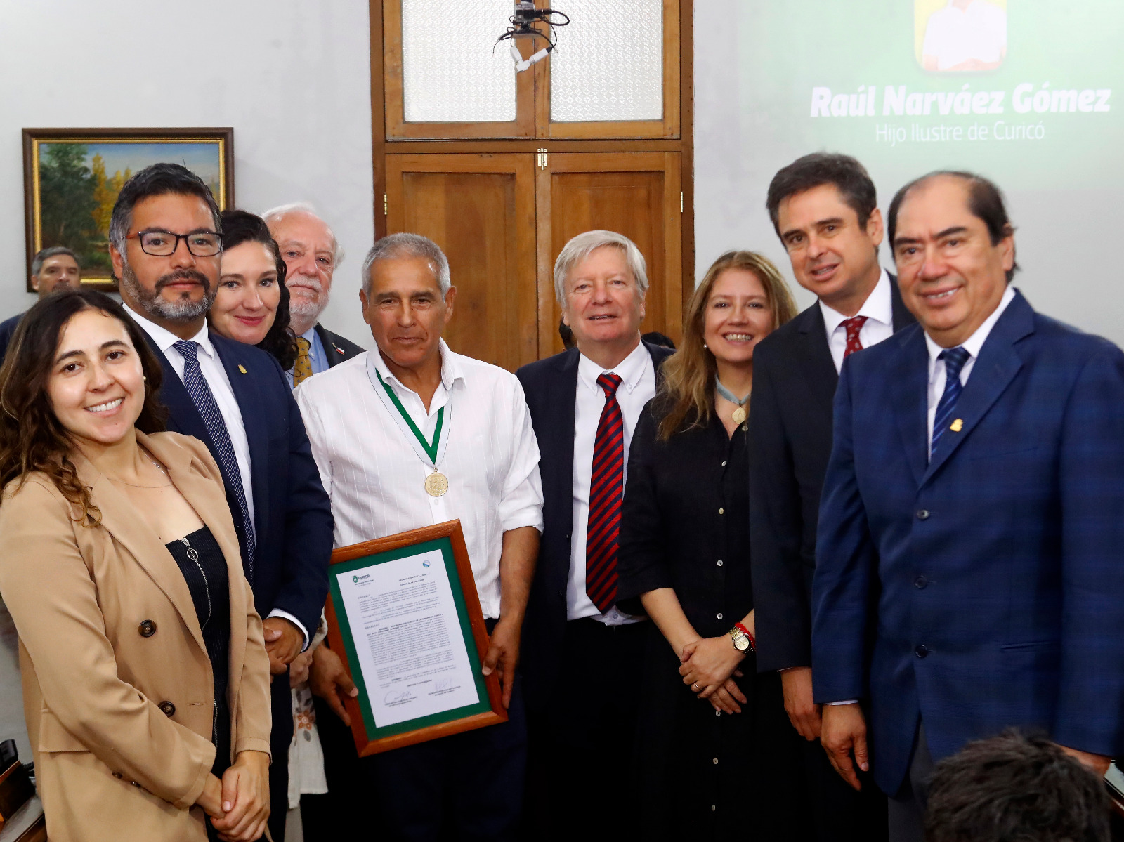 CURICO.-  En una ceremonia enmarcada en la solemnidad y la emotividad el concejo municipal de esta ciudad, procedió a investir con la distinción de hijo ilustre de Curicó al empresario y deportista local, Raúl Guillermo Narváez Gómez.