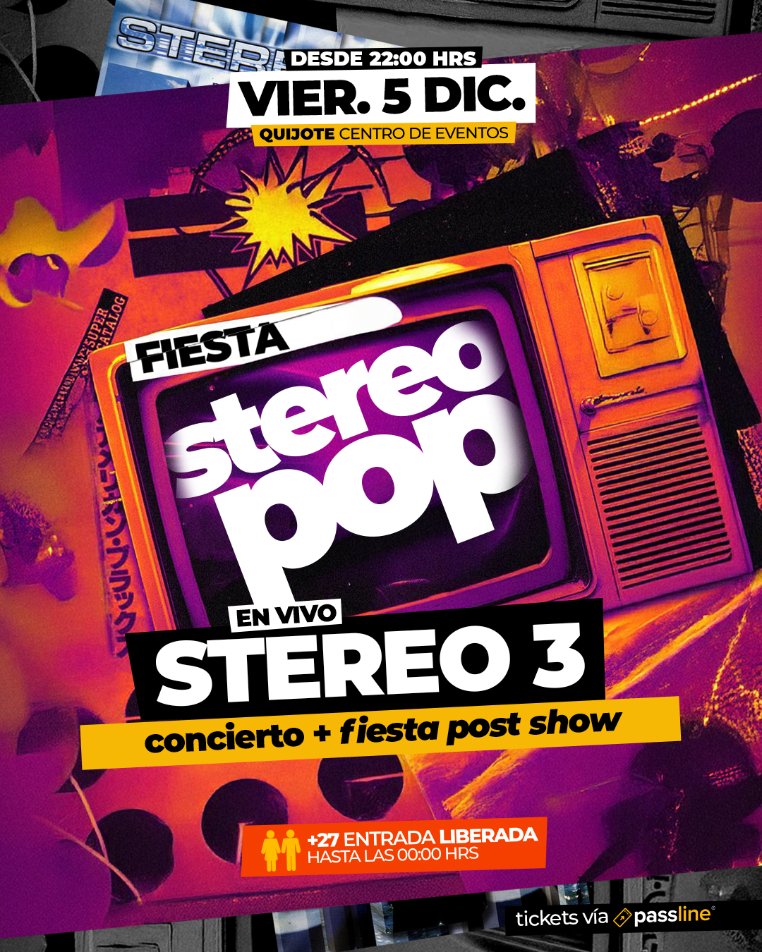 Este viernes 05 de diciembre, los amantes de los clásicos podrán disfrutar de un evento imperdible protagonizado por “Stereo 3”, la banda que marcó a toda una generación.